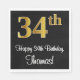 Este sofisticado, lujoso y elegante diseño de servilletas de papel de cumpleaños presenta un gran número ordinal "34th" con un aspecto de imitación de oro falso, además del mensaje de bienvenida de cumpleaños "Happy 34th Birthday" y un nombre de personalizable con un tipo de letra tipo script. También tiene un fondo de color negro. Las servilletas de papel con temática de cumpleaños como esta pueden ser divertidas de usar en una fiesta de cumpleaños que se celebra para alguien que está celebrando su 34 cumpleaños. [~Z0000516]