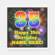 Este alegre y alegre diseño de servilletas de papel con temática de cumpleaños presenta un gran número "35" con un colorido patrón inspirado en el gradiente del espectro arcoiris, junto con el mensaje "Feliz cumpleaños número 35", y un nombre personalizado. El fondo presenta un patrón multicolor inspirado en la apariencia de los fuegos artificiales de celebración que estallan. Las servilletas de papel como esta podrían ser usadas en un fiesta realizado en celebración de los 35 años de alguien. [~Z0000574]