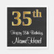 Este elegante, lujoso y sofisticado diseño de servilletas de papel de cumpleaños presenta un gran número ordinal "35th" que tiene un patrón de gradiente inspirado en el oro falso/imitación, además del mensaje de bienvenida de cumpleaños "Feliz cumpleaños número 35", y un nombre personalizado con un tipo de letra estilo script. El fondo es negro de color. Las servilletas de papel con temas de cumpleaños como esta podrían ser una manera divertida de celebrar el cumpleaños 35 de alguien. [~Z0000516]