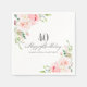 Una hermosa y femenina servilleta de cóctel personalizado para celebrar un cumpleaños histórico de estilo elegante. Las peonías rosadas de Rubor crean un marco floral elegante.