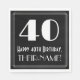El diseño de la servilleta de papel inspirado en el estilo de los años 20-30 presenta un gran estilo Art Déco inspirado en el número "40", el mensaje "Happy 40th Birthday", un nombre personalizado, y un patrón fronterizo compuesto de líneas delgadas. Unas toallas de papel personalizadas y con temas de cumpleaños como esta podrían ser usadas en el fiesta de 40 años de alguien. [~Z0000461]