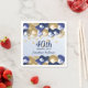 A stylish 40th birthday Party Napkin . Design features navy blue and gold balloons, Gold glittery starts and navy blue text all on a pale blue gradient background. A lovely party table addition for a 40th birthday party celebration. Easy to customize with your own details.