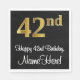 Este elegante, sofisticado y elegante diseño de pañales de papel temático para el cumpleaños presenta un gran número ordinal "42nd" con un aspecto de imitación/falso dorado, junto con el mensaje de bienvenida de cumpleaños "Feliz cumpleaños número 42" y un nombre editable con un tipo de letra estilo script. El fondo es negro de color. Las servilletas lujosas de papel como esta podrían ser usadas cuando se aloja a un fiesta para alguien en celebración de su 42 cumpleaños. [~Z0000516]