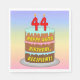 Este animado y colorido diseño de servilletas de papel de cumpleaños presenta una representación al estilo personalizado de una torta de cumpleaños de tres niveles con velas en forma de número en la parte superior que muestran la edad de "44", junto con el mensaje "FELIZ CUMPLEAÑOS 44″, y un nombre de destinatario personalizado. El fondo presenta un diseño de gradiente inspirado en el espectro de colores pastel. Unas servilletas de papel con temas de cumpleaños como estas podrían ser usadas en una fiesta de cumpleaños para alguien que está celebrando su cuarto cumpleaños. [~Z0000623]