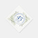 Con una delicada vegetación de color agua suave en el campo, esta servilleta botánica de moda de 45 o 65 años de boda puede ser personalizada con sus detalles especiales de aniversario en una elegante tipografía azul zafiro. Diseñado por Thisisnotme©