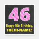 Este alegre y divertido diseño de servilletas de papel con temática de cumpleaños presenta un gran número "46" con un patrón de rayas rosa claro y rosa oscuro que contiene formas cardíacas. También incluye el mensaje de bienvenida de cumpleaños "Feliz cumpleaños número 46", y un nombre de personalizable. Las servilletas de papel como esta pueden ser divertidas de usar en la celebración de cumpleaños número 46 de alguien. También podría ser una elección divertida para alguien cuyo cumpleaños cae el 14 de febrero (El día de San Valentín), debido a sus adorables símbolos del corazón y sus colores. [~Z0000436]