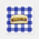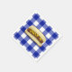 Perro caliente con manta azul y blanca de búfalo para el 4 de julio fiesta de barbacoa.