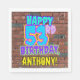 Este divertido diseño de servilletas de papel de cumpleaños muestra el mensaje "FELIZ 53º CUMPLEAÑOS", con un vibrante, colorido, arte urbano urbano e inspirado en el graffiti, junto con un nombre editable del destinatario. El fondo está decorado con un patrón inspirado en el aspecto de una pared de ladrillo. Unas toallas de papel vibrantes, divertidas, personalizadas con temas de cumpleaños como esta podrían ser usadas en un fiesta para alguien que está celebrando su cumpleaños número 53. [~Z0000534]
