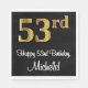 Este elegante, sofisticado y lujoso diseño de servilletas de papel temático para cumpleaños presenta un gran número ordinal "53" con un aspecto imitación/falso de inspiración dorada, junto con el mensaje de bienvenida de cumpleaños "Feliz cumpleaños número 53" y un nombre personalizado con un tipo de letra estilo guionista. El fondo es negro de color. Las servilletas de papel como esta pueden ser usadas cuando se celebra el cincuenta y tercer cumpleaños de alguien. [~Z0000516]