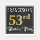 This opulent and luxurious birthday themed paper napkin design features an editable name and the message “53rd Birthday Party”. The large number “53rd” has an imitation/faux gold-inspired coloring pattern, and the words “Birthday Party” are in elegant script-style text. The background is colored black by default (although it can be customized). Ornate, fancy paper napkins like this might be useful to have at a birthday party/celebration being held to honor somebody’s fifty third birthday. [~Z0000565]