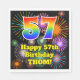 Este divertido y alegre diseño de servilletas de papel de cumpleaños presenta un gran número "57" con un colorido patrón inspirado en el gradiente del espectro del arco iris, junto con el mensaje "Feliz cumpleaños número 57", y un nombre personalizado. El fondo está decorado con un estilo vibrante y colorido, inspirado en la estela de los fuegos artificiales de celebración. Las servilletas de papel como esta pueden ser usadas cuando se celebra el cumpleaños 57 de alguien. [~Z0000574]