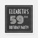 Este elegante diseño de servilletas de papel estilo años 20-1930 inspirado en la celebración de 59 años/diseño de papel fiesta presenta un nombre editable, un lujoso estilo Art Déco inspirado en el número "59", el mensaje "¡FIESTA DE CUMPLEAÑOS!" y un patrón fronterizo compuesto de líneas. El fondo es negro de color de forma predeterminada, pero se puede personalizar a un color diferente, si se desea. Las servilletas de papel como estas pueden ser usadas en un fiesta para alguien que está celebrando su cumpleaños número 59. [~Z0000616]