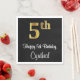 Este elegante, sofisticado y elegante diseño de servilletas de papel con temática de cumpleaños presenta un gran número ordinal "5º" que tiene un patrón de gradiente de tipo oro falso/imitación, junto con el mensaje de bienvenida de cumpleaños "Feliz quinto cumpleaños", y un nombre personalizado con un tipo de letra estilo script. El fondo es negro de color. Unas servilletas elegantes de papel como esta pueden ser divertidas de usar en un fiesta que se celebra su quinto cumpleaños. [~Z0000516]