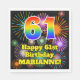 Este alegre y emocionante diseño de servilleta de papel de cumpleaños presenta un gran número "61" con un colorido patrón inspirado en el gradiente del espectro de arcoiris, junto con el mensaje "Feliz cumpleaños número 61", y un nombre personalizado. El fondo presenta un vibrante y colorido estallido de fuegos artificiales de celebración inspirados en el. Las servilletas de papel como esta podrían ser usadas en un fiesta llevado a cabo en celebración del 61 cumpleaños de alguien. [~Z0000574]