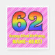 El diseño de la servilleta de papel temático de 62 años, festivo y feliz, presenta un gran número de "62" con un patrón colorido inspirado en la apariencia de un espectro arcoiris. También incluye el mensaje "Feliz cumpleaños número 62", y un nombre de personalizable. El fondo está decorado con rayas rosas oscuras y rosas claras que contienen formas cariñosas de corazón rosado. Divertidas, servilletas de papel editables como esta podrían ser usadas en una celebración de cumpleaños que se lleva a cabo en honor de los sesenta y dos años de alguien. [~Z0000417]