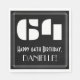 Esta apariencia de los años 2000 inspirada en el diseño de la servilleta de papel con temática de cumpleaños presenta un gran estilo Art Déco inspirado en el número "64", el mensaje "Feliz cumpleaños número 64", un nombre de personalizable y un patrón fronterizo compuesto de líneas delgadas. Unas toallas de papel personalizadas y con temas de cumpleaños como esta podrían ser usadas en la fiesta de cumpleaños número sesenta. [~Z0000494]