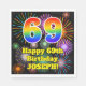 Este alegre y alegre diseño de servilletas de papel temático para cumpleaños presenta un gran número "69" con un colorido patrón inspirado en el gradiente del espectro del arcoiris, junto con el mensaje "Feliz cumpleaños número 69", y un nombre de personalizable. El fondo está decorado con un estilo vibrante y colorido, inspirado en la estela de los fuegos artificiales de celebración. Las servilletas de papel como esta podrían ser usadas en una fiesta de cumpleaños realizada para celebrar el cumpleaños 69 de alguien. [~Z0000574]