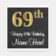 Este lujoso, sofisticado y elegante diseño de servilletas de papel temático para el cumpleaños presenta un gran número ordinal "69th" con un patrón de gradiente tipo oro falso/imitación, además del mensaje de bienvenida de cumpleaños "Feliz cumpleaños número 69", y un nombre personalizado con un tipo de letra tipo script. El fondo es negro de color. Las servilletas de papel como esta podrían ser usadas para celebrar el 69º cumpleaños de alguien. [~Z0000516]