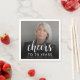 Esta servilleta personalizado de cumpleaños número 70 muestra la foto personalizada, nombre y cumpleaños del invitado de honor, junto con la palabra "Cheers" en elegante guión de caligrafía blanca. Una pantalla oscura ayuda a hacer que el texto aparezca. ¡Una gran manera de celebrar a alguien que cumple setenta años!