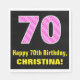 Este alegre y divertido diseño de servilletas de papel con temática de cumpleaños presenta un gran número "70" con un patrón rayado que contiene formas cardíacas de color rosa claro y rosa oscuro. También incluye el mensaje de bienvenida de cumpleaños "Feliz cumpleaños número 70", y un nombre personalizado. Las servilletas de papel como esta pueden ser agradables de tener en un fiesta siendo llevado a cabo para celebrar el septuagésimo cumpleaños de alguien. También puede ser una elección divertida para alguien que tiene un cumpleaños que cae el 14 de febrero (El día de San Valentín), debido a sus adorables símbolos del corazón y colores. [~Z0000436]