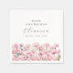 Perfect table decor for a January birthday party. Carnation is the birth flower for that month. It forms a pretty watercolor floral bottom border on this festive personalized napkin. The birthday celebrant's name, age and birthdate are placed above it using elegant calligraphy and typography. All text is editable.