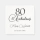 80 and Fabulous 80th Birthday Black Script napkin. Celebrate eight wonderful decades in timeless style. These "80 & Fabulous" cocktail napkins feature a chic, black-and-white script typography design that pairs perfectly with any party theme. Customize with the name of the guest of honor and birthday date. Text color can be changed in the design edit option.