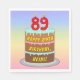 Este animado y colorido diseño de servilletas de papel con temática de cumpleaños presenta una representación al estilo personalizado de un pastel de cumpleaños de tres niveles con velas en forma de número en la parte superior que muestran la edad de "89", junto con el mensaje "FELIZ 89º CUMPLEAÑOS", y un nombre de destinatario personalizado. El fondo presenta un diseño multicolor de gradiente inspirado en el espectro arcoiris pastel. Unas servilletas de papel con temas de cumpleaños como estas podrían ser usadas en una fiesta de cumpleaños para alguien que está celebrando su cumpleaños número ochenta y nueve. [~Z0000623]