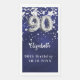 Para una celebración de cumpleaños número 90. Un color de fondo azul marino con estrellas falsas de plata. El color azul es desigual. Añade tu nombre, texto.