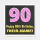 Este divertido y alegre diseño de servilletas de papel con temática de cumpleaños presenta un gran número "90" con un patrón rayado que contiene formas cardíacas de color rosa oscuro y rosa claro. También incluye el mensaje de bienvenida de cumpleaños "Feliz cumpleaños 90", y un nombre editable. Las servilletas de papel como esta pueden ser divertidas de usar en la fiesta de cumpleaños número 90 de alguien o en la celebración. También puede ser una elección divertida para alguien que tiene un cumpleaños que cae sobre el El día de San Valentín (14 de febrero), debido a sus adorables símbolos del corazón y colores. [~Z0000436]