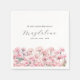 Perfect table decor for a January birthday party. Carnation is the birth flower for that month. It forms a pretty watercolor floral bottom border on this festive personalized napkin. The birthday celebrant's name, age and birthdate are placed above it using elegant calligraphy and typography. All text is editable.