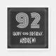 Esta apariencia vintage de diseño de servilletas de papel con temática de cumpleaños presenta un gran estilo Art Déco inspirado en el número "92", el mensaje "HAPPY 92nd BIRTHDAY", un nombre personalizado, y un patrón de borde formado por líneas. Unas toallas de papel con tema de cumpleaños personalizadas y divertidas como esta podrían ser usadas en la celebración de los noventa segundos cumpleaños de alguien. [~Z0000395]