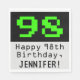 Este diseño de pañuelos de papel con temática de cumpleaños nerd y divertido presenta un gran estilo de videojuegos verde "98" en un fondo de color negro. También incluye el mensaje de bienvenida de cumpleaños "Feliz cumpleaños 98", y un nombre que puede ser personalizado. Unas toallas de papel divertidas y nerviosas como esta pueden ser útiles en un fiesta que se celebra el 98 aniversario de un científico, un ingeniero o alguien a quien realmente le gustan los juegos retro de computadora. [~Z0000404]