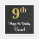 Este sofisticado, elegante y lujoso diseño de servilletas de papel de cumpleaños presenta un gran número ordinal "9º" con un aspecto falso/imitación de oro, además del mensaje de bienvenida de cumpleaños "Feliz noveno cumpleaños", y un nombre personalizado con un tipo de letra estilo script. El fondo es negro de color. Sofisticadas toallas de papel con temas de cumpleaños como esta podrían ser usadas en una fiesta de cumpleaños para celebrar el noveno cumpleaños de alguien. [~Z0000516]