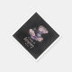 These spooky chic Halloween themed baby shower napkins feature a smoky cauldron adorned with a pumpkin and flowers in a color palette of charcoal, pink, and purple, with "a baby is brewing" beneath. Personalize with your baby shower date.