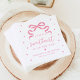 This sweetheart baby shower napkin features soft pink lettering and heart accents for a sweet, romantic look. A pink bow anchors the design at the top, while the phrase “A Little Sweetheart Is on the Way!” is displayed in a handwritten script below. Personalization allows you to add the mother-to-be's name and event date, making the napkin feel thoughtfully coordinated with the overall shower décor. Ideal for baby girl showers and sweetheart-themed celebrations, this napkin brings a subtle, elegant touch to the table.