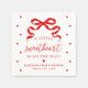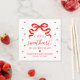 Add a bold yet charming accent to your table settings with this sweetheart baby shower napkin featuring red lettering and heart details. The design features a red bow at the top, accompanied by the phrase “A Little Sweetheart Is on the Way!” in a handwritten script. Personalized text at the bottom allows you to include the mother-to-be’s name and the date, creating a coordinated and intentional look for the celebration. This napkin pairs beautifully with sweetheart-themed and Valentine-inspired baby showers.