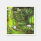 Original painting of a lush pond filled with water lily plants and vibrant foliage. The vivid colors and intricate details create a lively, natural setting.