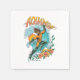 Aquaman y el reino perdido | Chequea Aquaman con su Tridente saliendo del mar en una ola al atardecer, con su nombre e ícono con acento floral.