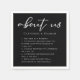 La tendencia actual de los bodas de diseño es ofrecer a sus huéspedes una moda, una decoración inteligente como estos datos sobre nuestras servilletas. Añada sus detalles de compromiso o cortejo bajo la tipografía blanca minimalista en una servilleta moderna de boda negro.