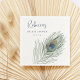 Nuestras elegantes servilletas para cóctel son un hermoso toque personalizado para la despedida de soltera que estás planeando. El diseño presenta una sola pluma de pavo real en acuarelas suaves, flanqueada por los detalles de tu evento -- nombre de la homenajeada, tipo de evento y fecha -- en letra coordinada azul medianoche y azul medio.