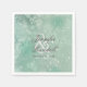 Una servilleta boda o fiesta de estilo artístico moderno, con un bonito fondo acuático abstracto de color verde azulado que representa la nevada en invierno.