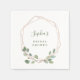 Estas servilletas modernas y elegantes presentan una corona de hojas de eucalipto de acuarela verde y un marco geométrico de falso rosa dorado sobre un fondo blanco. Puedes cambiar fácilmente el texto, lo que hace que sea perfecto para una fiesta de bebé o una despedida de soltera.