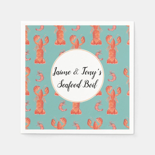 Servilleta De Papel Acuarela Mano Mariscos Boiga de langosta