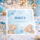 Azul lindo color agua línea de cumpleaños con osos. Nombre, dirección y edad modificables.