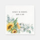 Girasol acuarela rústico y elegante y eucalipto sobre servilletas de papel blanco.
