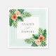 Con este diseño de servilletas, con hermosas hojas de acuarela y flores, eleve la decoración tropical boda. El texto es totalmente personalizable, perfecto para bodas en la playa, eventos de destino o celebraciones con temática insular