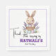 ¡Celebra con estilo este encantador papel y toallas Fiestas con la temática de un conejito! Con un conejo y elegantes fuentes negras y violetas en la parte delantera, es perfecto para una fiesta mágica y divertida de cumpleaños.