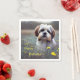 Estas servilletas de papel presentan un lindo perro shih zu en un campo de flores.