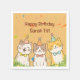 Celebrate your little one's special day with this charming, customizable paper Napkins ! Featuring three cute cartoon kittens wearing colorful party hats and festive bow ties, this design is perfect for a cat-themed birthday party. The soft blue background is accented with bright confetti, making it a delightful addition to any first birthday celebration. Easily personalize the text with your child's name and age for a truly unique party experience.