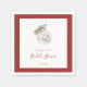 Servilletas minimalistas de despedida de soltera de invierno con una ilustración de acuarela de un adorno de Navidad con anillos de boda, ramita de pino y bayas de Navidad. Con caligrafía elegante a mano.